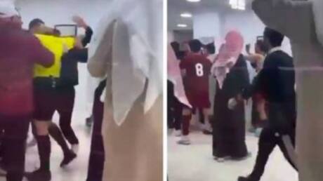 ووثق مقطع فيديو متداول، عبر منصة “إكس”، المشاجرة العنيفة التي نشبت بين لاعبي النصر والحكام.