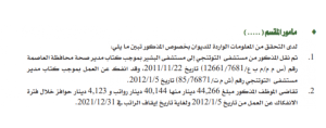 وبحسب رصد ” شبكة الشرق الأوسط نيوز ” لتقرير ديوان المحاسبة 2022، أظهر التقرير أن تم نقل ” مامور المقسم ” من مستشفى التوتنجي الى البشير بموجب كتاب رسمي بتاريخ 22-11-2011، وقد انفك عن العمل بموقعه بتاريخ 5-1-2012 .