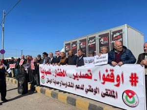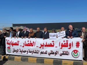 شبكة الشرق الأوسط نيوز : نظم الملتقى الوطني لدعم المقاومة وحماية الوطن (تجمع حزبي نقابي أردني)، ظهر اليوم الأحد، اعتصاما شعبيا أمام السوق المركزي جنوبي العاصمة عمان، لرفض تصدير الخضار والفواكه للاحتلال.