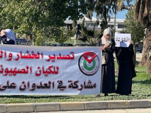 وطالبوا الحكومة بـ”ضرورة الوقوف أمام مسؤولياتها ومن خلال الأطر القانونية بمنع تصدير الخضار إلى الاحتلال، انسجاما مع الموقف الرسمي الرافض للعدوان على غزة”.