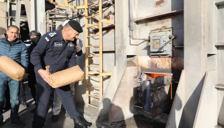 مديرية الأمن العام تتلف كميات كبيرة من المواد المخدرات ضبطت في (33) قضية