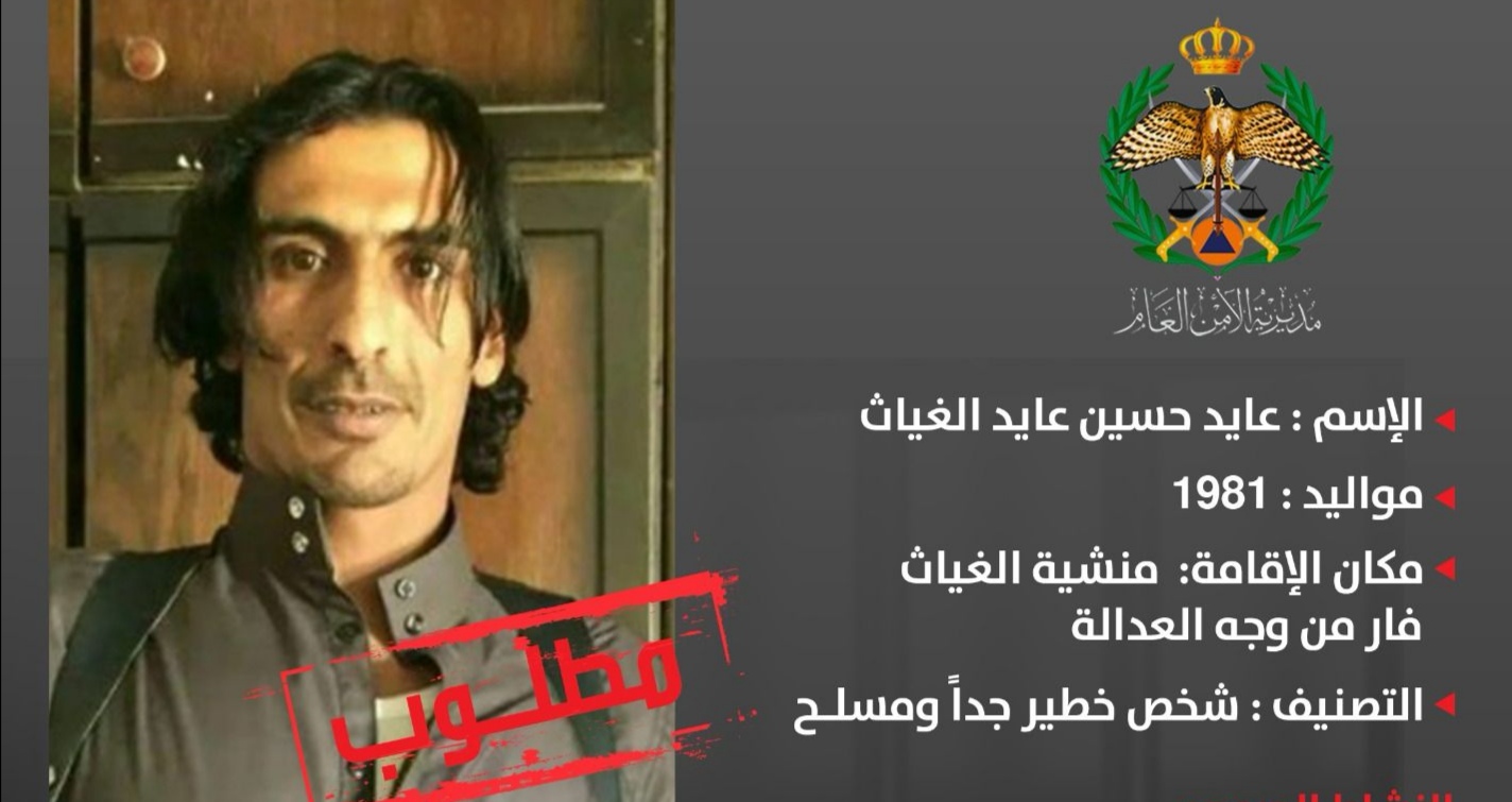 وأكّدت مديرية الأمن العام أن المطلوبين كافة ممن نشرت صورهم وتفاصيلهم ونشاطاتهم الجرمية يتوارون عن الأنظار في مناطق حدودية صحراوية، ويشكلون تهديداً للأمن الوطني والإقليمي ولسلامة المجتمع وأمنه.