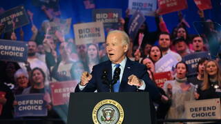 ولفت المراسل إلى استطلاع للرأي أجرته مؤسسة جالوب يوم الجمعة، أفاد بأن 66% من الأمريكيين لن يصوتوا لمرشح رئاسي يزيد عمره عن 80 عاما أو متهم بارتكاب جناية.