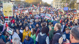 لندن.. تظاهرة حاشدة مؤيدة لفلسطين بمنطقة السفارة الإسرائيلية