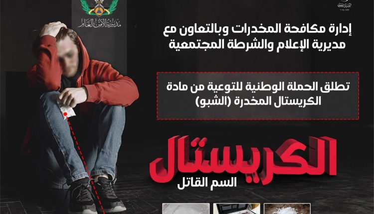 إدارة مكافحة المخدرات تطلق حملة توعوية ضد مادة الكريستال القاتلة، وتطلب من الجميع المساهمة بها والإبلاغ عن أي نشاط يرتبط بها