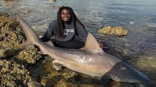 أمريكي يصطاد سمكة قرش بيديه العاريتين (فيديو)