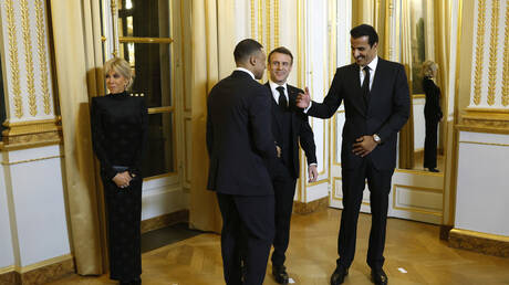 شبكة الشرق الأوسط نيوز : دخل كيليان مبابي نجم باريس سان جيرمان، في حوار جانبي مع أمير قطر الشيخ تميم بن حمد آل ثاني والرئيس الفرنسي إيمانويل ماكرون على هامش حفل عشاء أقيم في العاصمة الفرنسية مساء الثلاثاء.
