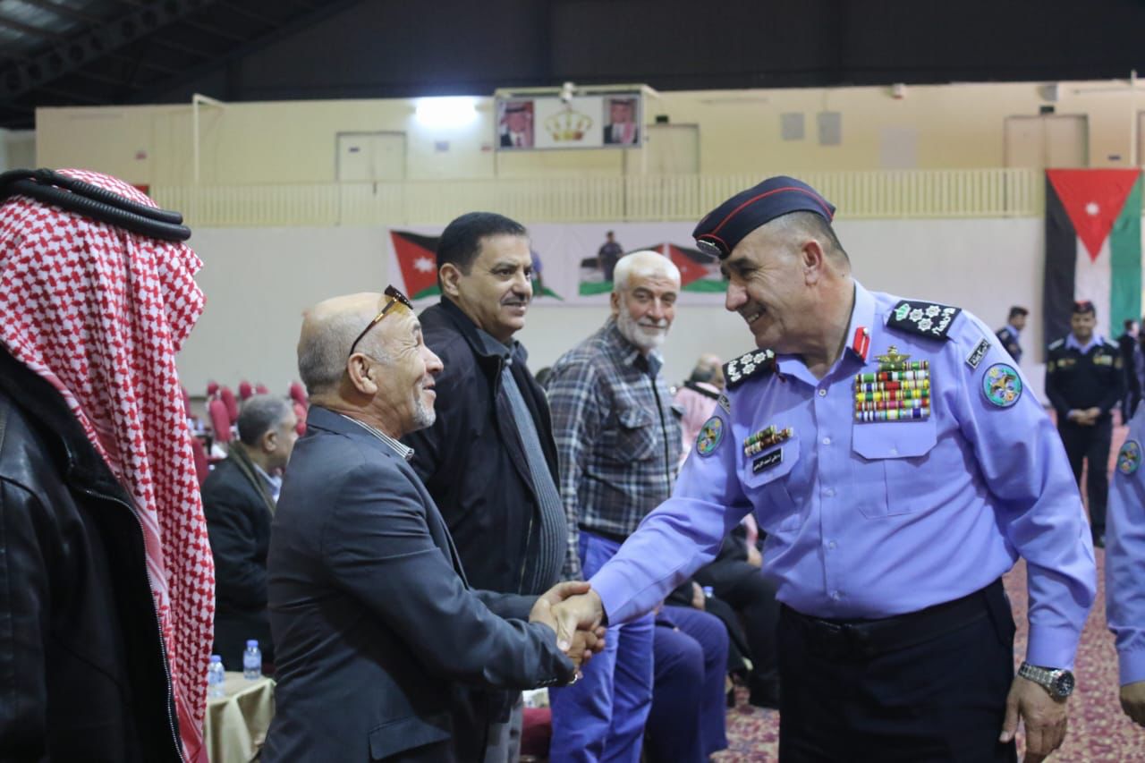 وثمنت مديرية الأمن لابنائها من المتقاعدين والمحاربين القدامى، والمصابين العسكريين، وذوي الشهداء وقوفهم صفاً واحداً مع إخوانهم وأخواتهم من العاملين والعاملات، والتفافهم حول القيادة الهاشمية في كل الظروف والأوقات.