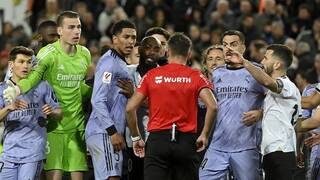 واحتج لاعبو ريال مدريد على قرار الحكم جيل مانثانو عدم منحهم فرصة إكمال الهجمة، وعدم احتساب هدف الفوز لهم، واشهر الحكم البطاقة الحمراء في وجه بيلينغهام بسب الاعتراض على إلغاء الهدف.
