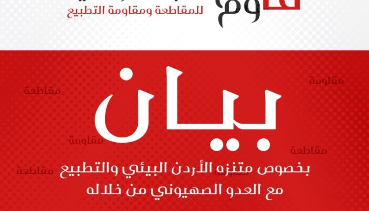 إن دعم هذا المشروع الذي جاء امتدادًا لعملية بناء السلام الموهوم من خلال التعاون البيئي بين الأردن و”السلطة الفلسطينية” والاحتلال الصهيوني يضرب مسيرة نضالنا الوطني المستمرة ضد الاحتلال الصهيوني، وهو تكتيك لاستدراج الأردن إلى اتفاقيات مع الكيان الصهيوني ترهن سيادة الأردن، وتهدم اقتصاده وتسلبه موارده وحقوقه، وهو خدمة للمشروع الصهيوني التوسعي الاستعماري، واعترافا بهم ككيان رسمي وإضفاء الشرعية على وجودهم أمام العالم وطمس حقيقتهم المجرمة، بالإضافة إلى تصويرهم كجار متحضر وواعٍ بيئياً، بينما يستمر في قتل شعبنا الفلسطيني واحتلال أراضينا العربية وسرقة مواردها الطبيعية والسيطرة عليها. لم ولن تقوم مثل هذه المشاريع لإنقاذ البيئة في الأردن، إنما لجر الشباب الأردني والعربي نحو التطبيع والعلاقات المشبوهة مع الكيان المحتل واستخدامهم كأدوات لتمرير الأجندة التي يسعى لتحقيقها ضد بلادنا.