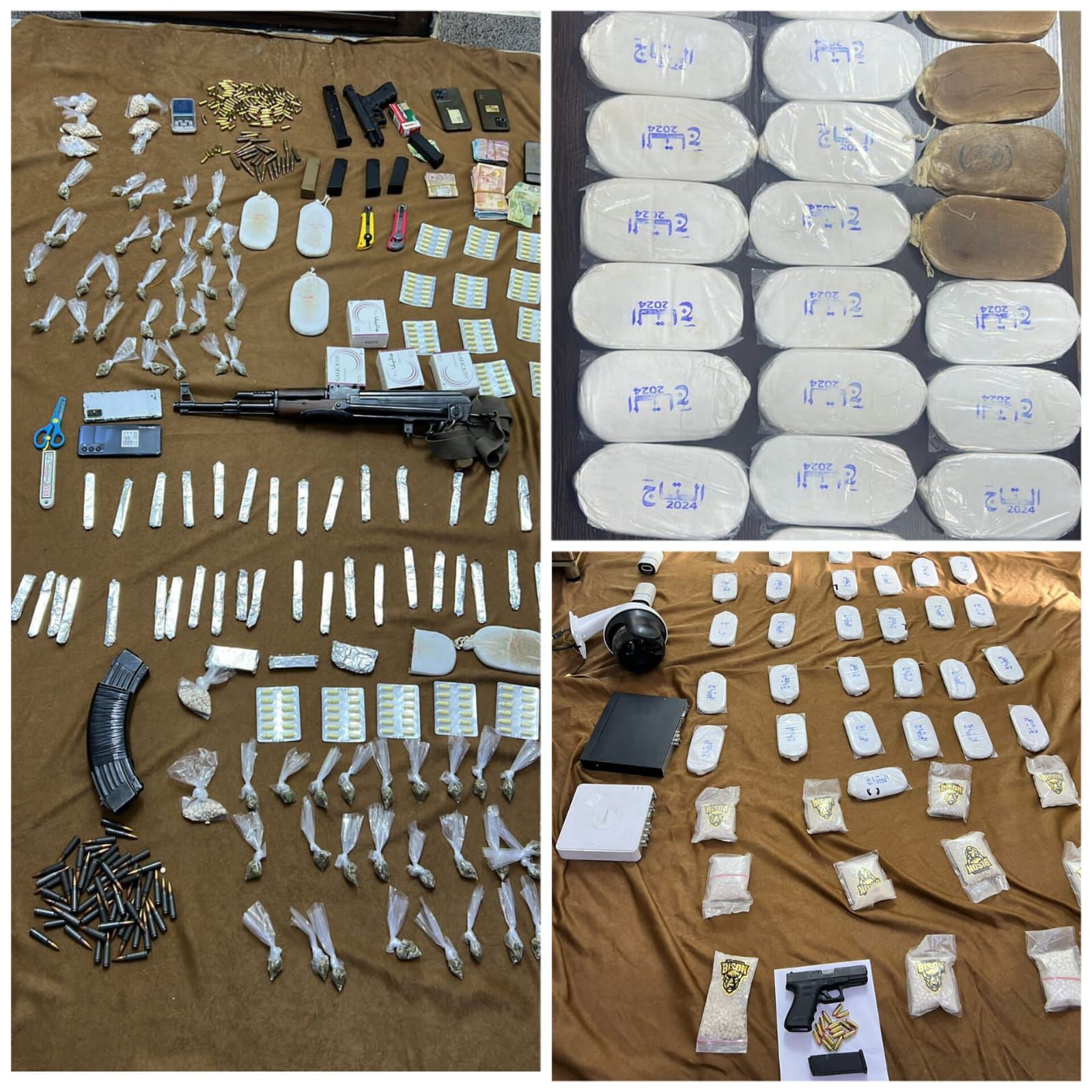 كما وجرت في إحدى مناطق جنوب عمان مداهمة شخصين من المصنفين بالخطرين ومن تجار المخدرات ومروجيها بعد جمع المعلومات حولهما وتحديد مكانهما وضُبط بحوزتهما كميات كبيرة من الماريجوانا المخدرة و 3 كفوف حشيش وكمية من الحبوب المخدرة و 3 أسلحة نارية، وفي شمال العاصمة أُلقي القبض على مروج للمخدرات وبحوزته 6 كفوف حشيش وكمية من الحبوب المخدرة .