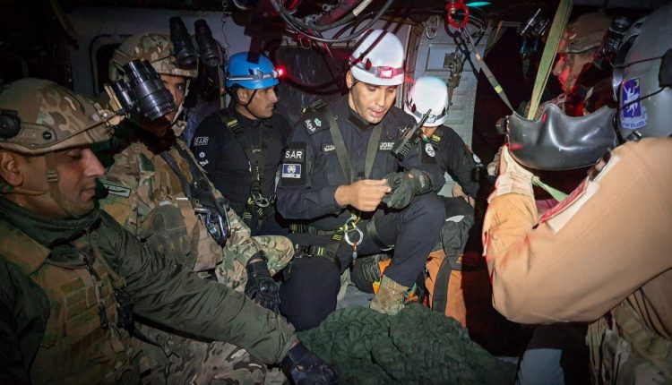 ** مساندة من نشامى القوات المسلحة –سلاح الجو الملكي لإخلاء المصابين من خلال طائرة رافقها فريق البحث والإنقاذ الدولي.