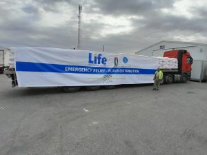 «لايف للإغاثة والتنمية» وبالتعاون مع الهيئة الخيرية الاردنية الهاشمية تسيير قافلة جديدة محملة بمادة الطحين إلى قطاع غزة