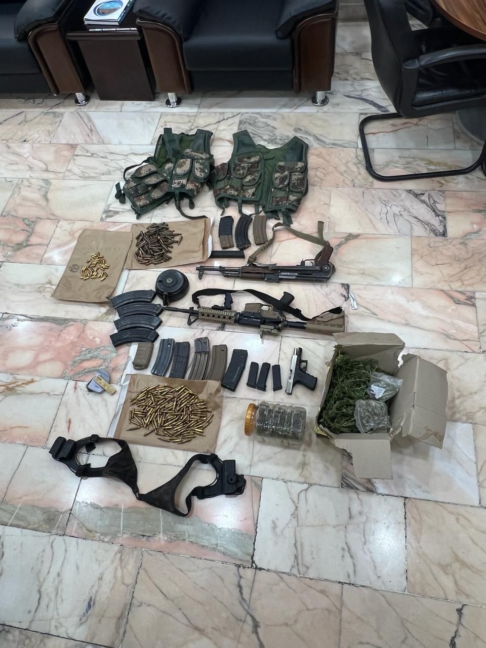 وأكّد الناطق الإعلامي أنه ضبط بحوزته ثلاثة أسلحة نارية وكمية من الذخيرة الحيّة وكمية من الحشيش المخدر وستتم إحالته لمصادر طلباته فور استكمال التحقيقات.