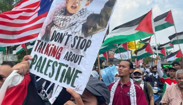 وتظاهر الماليزيون إحياءً ليوم القدس العالمي رافعين أعلام فلسطين وعبارات تندّد بقتل الأطفال من قبل الاحتلال الإسرائيلي في قطاع غزّة.