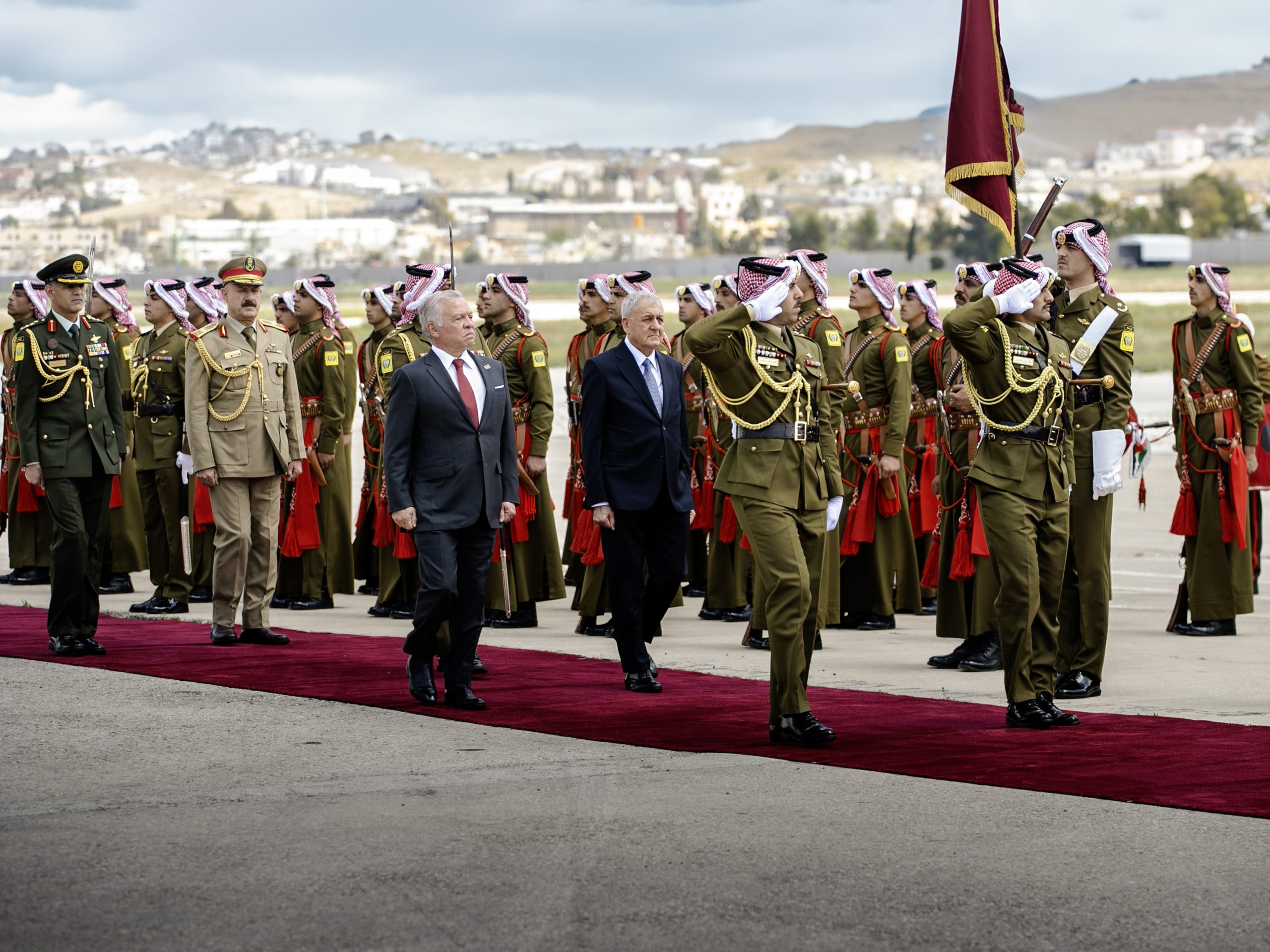 شبكة الشرق الأوسط نيوز : استقبل جلالة الملك عبدالله الثاني، اليوم الاثنين، الرئيس العراقي الدكتور عبداللطيف رشيد، لدى وصوله إلى مطار ماركا في زيارة رسمية للمملكة تستمر يومين.
