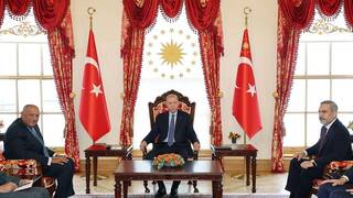 وتبادلا أردوغان وشكري الرؤى بشأن التطورات المتعلقة بالأزمة السورية، حيث أشار وزير الخارجية المصري إلى موقف القاهرة الثابت من الأزمة السورية، والقائم على ضرورة التوصل إلى تسوية سياسية بموجب قرار 2254، وبما يضمن تحقيق سيادة سوريا، وأمنها واستقرارها.