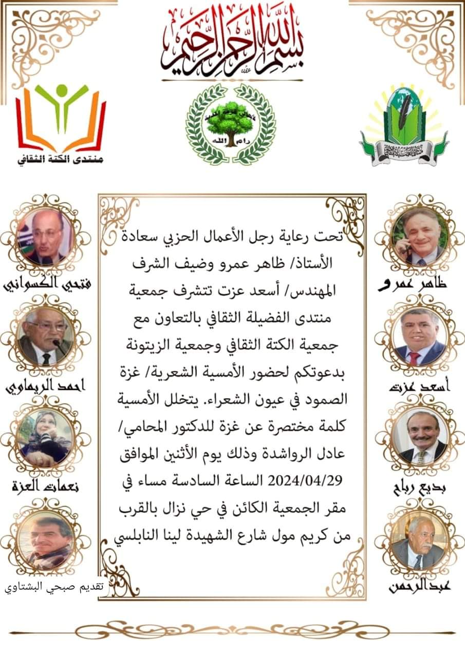 أمسية تضامنية : غزة الصمود في عيون الشعراء