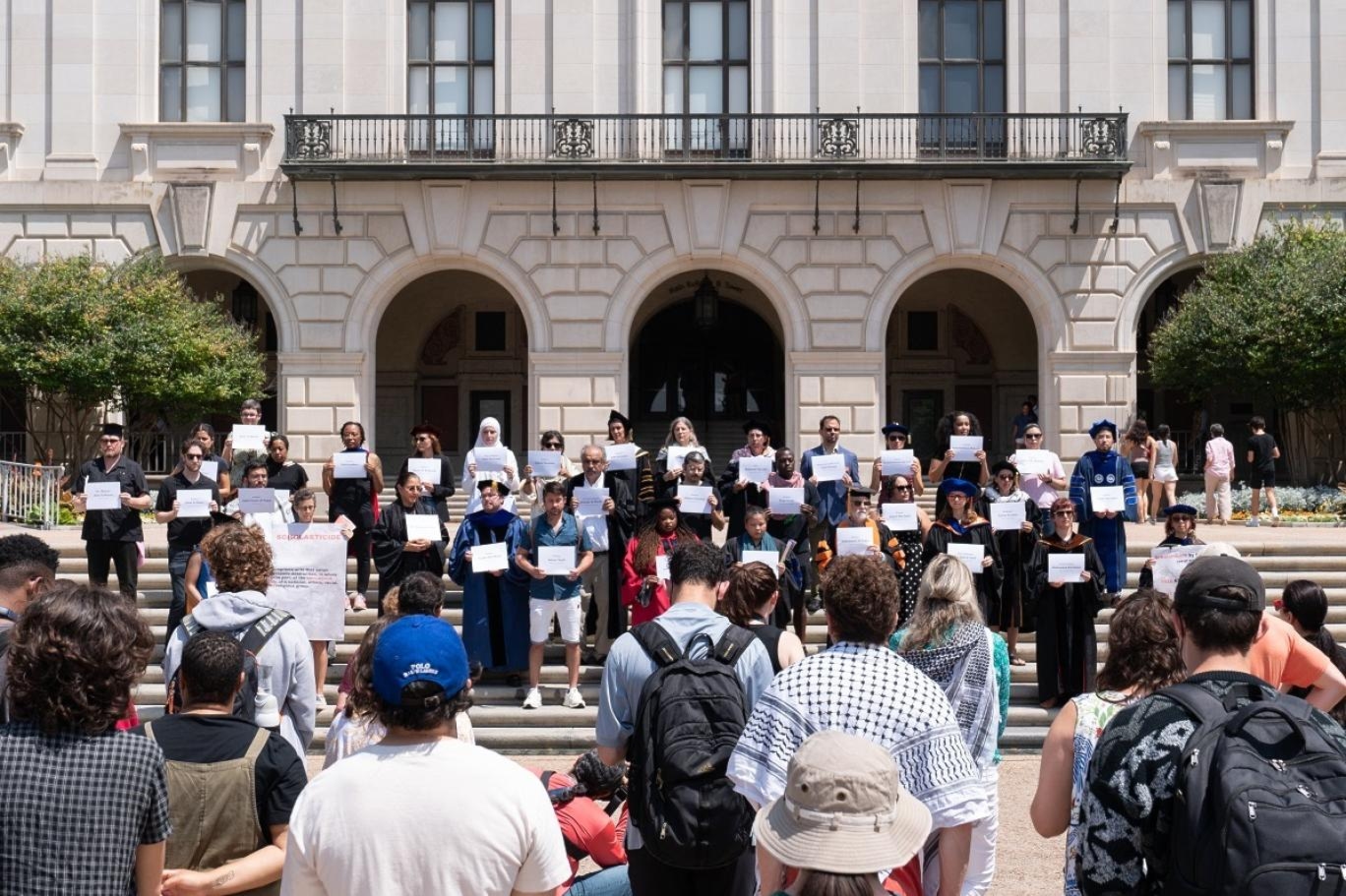 وأضاف المشاركون في بيانهم أنّ “تحرّكنا عفوي وليس له قائد أو زعيم”، موضحين أنّ “الأشخاص الذين يسيطرون على المبنى الجامعي يرفضون أن يكونوا متواطئين في الإبادة الجماعية الاستعمارية التي يرتكبها نظام الفصل العنصري الإسرائيلي”.