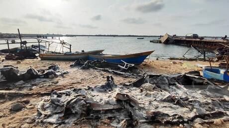 بالصور.. جانب من الدمار الذي لحق بمراكب الصيادين في ميناء غزة جراء قصف إسرائيلي