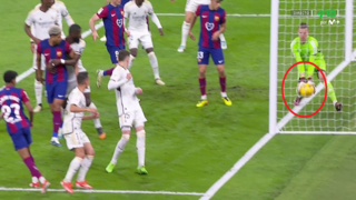 وطالب لاعبو برشلونة باحتساب الهدف، لكن الحكم أوقف المباراة عدة دقائق انتظارا لقرار تقنية الفيديو التي أكدت عدم عبور الكرة بكامل محيطها، ليأمر بعدها الحكم باستكمال اللعب.