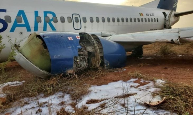 وأظهر مقطع فيديو جرى تصويره ليلا ونشر على وسائل التواصل الاجتماعي طائرة تحمل شعار ترانس إير التي مقرها السنغال تقف على العشب وجناحها مغطى بالرغوة التي تستخدم في إخماد الحرائق.