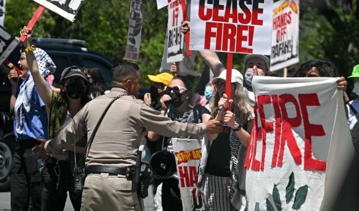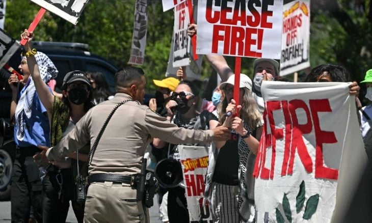 واجتاحت الاحتجاجات المتضامنة مع فلسطين الجامعات في جميع أنحاء الولايات المتحدة، ولاحقت بايدن في مناسبات خاصة، ودفعت الديمقراطيين في ولايات رئيسية في الانتخابات إلى التصويت في الانتخابات التمهيدية “بغير ملتزم” للتعبير عن استيائهم مع ارتفاع عدد الشهداء في غزة إلى 35 ألف شخص.