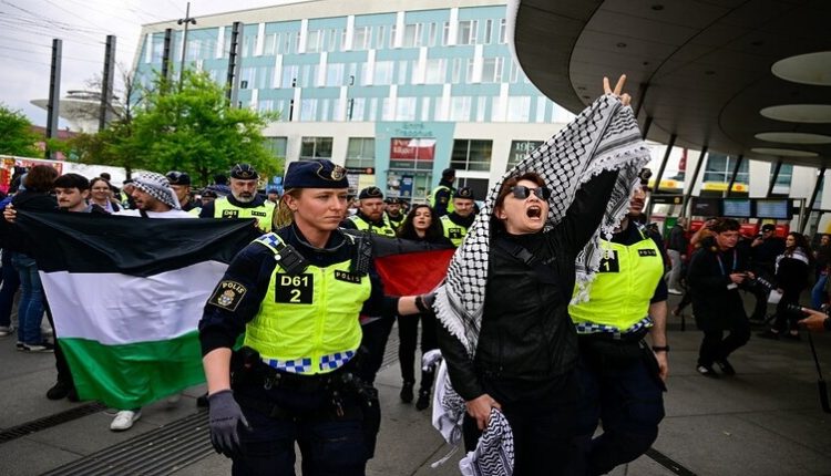 ويشارك أكثر 20 الف متظاهر في تظاهرات احتجاج مستمرة على المشاركة الإسرائيلية في مسابقة الأغنية الأوروبية في مالمو.