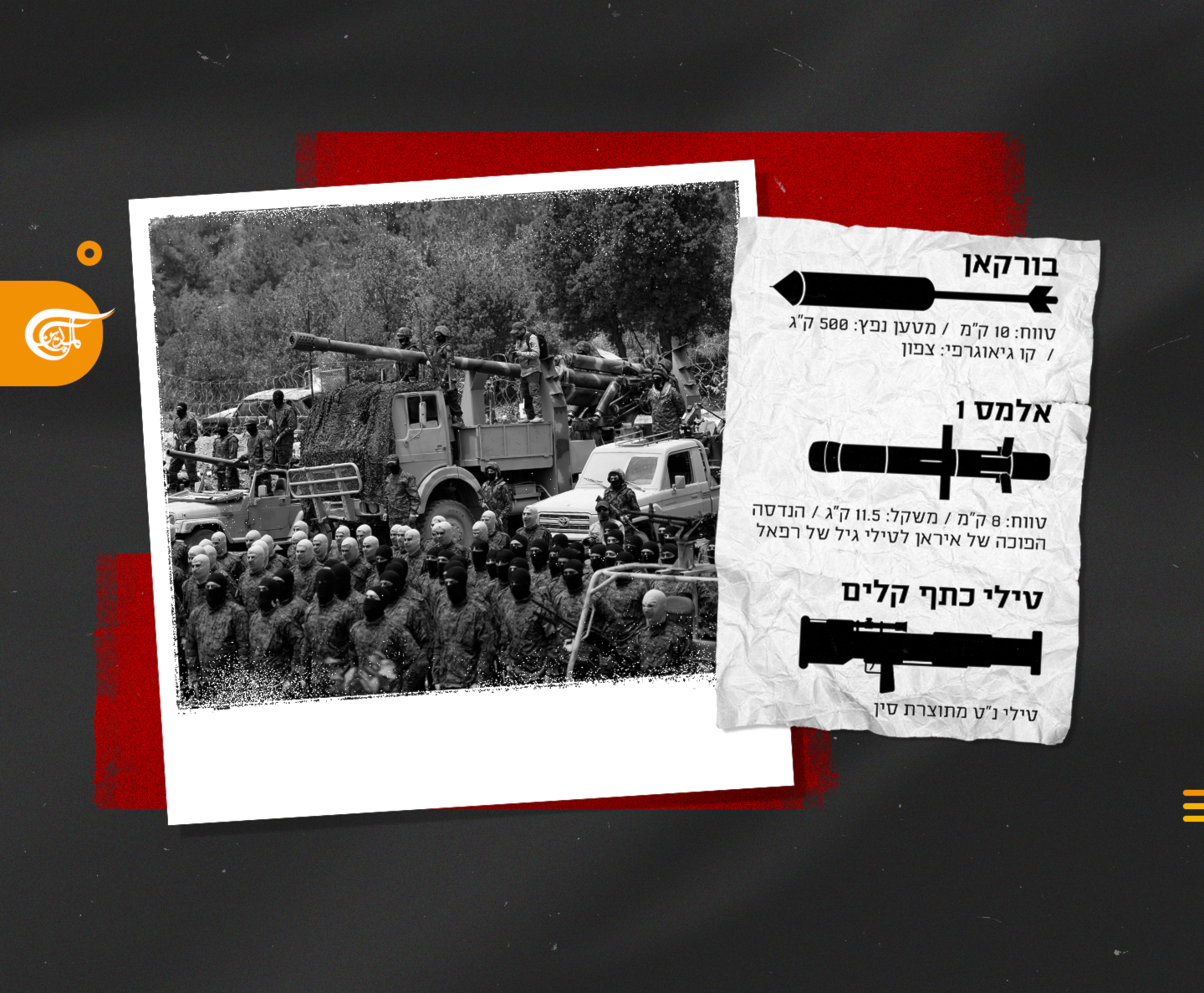 ويستخدم حزب الله وسيلةً أخرى، على نطاقٍ واسعٍ نسبياً، وهي الصواريخ المضادة للدروع من طراز “الماس 1” وهي هندسة عكسية إيرانية لصواريخ “غيل سبايك MR” التي تنتجها شركة “رفائيل”، والهندسة العكسية هي عملية يقوم فيها خبراء بتحليل مكوّنات إحدى الصواريخ ينتجون قطعة محدّثة منها، وفي الإعلام الإيراني قيل إنّ “الماس1” يزن نحو 11.5 كلغ (وزن القاذف مع الصاروخ نحو 15 كلغ)، ويمكنه أن يتعقّب الهدف إلى مسافة ثمانية كيلومترات تقريباً، وفق الموقع الإسرائيلي.