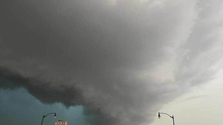 وقال عمدة الولاية جون ويتمير للصحفيين: “لدينا عاصفة قوية، وسرعة رياح تبلغ 160 كيلومترا في الساعة، أي ما يعادل “إعصار آيك”، وتسببت بدمار كبير وسط المدينة”.