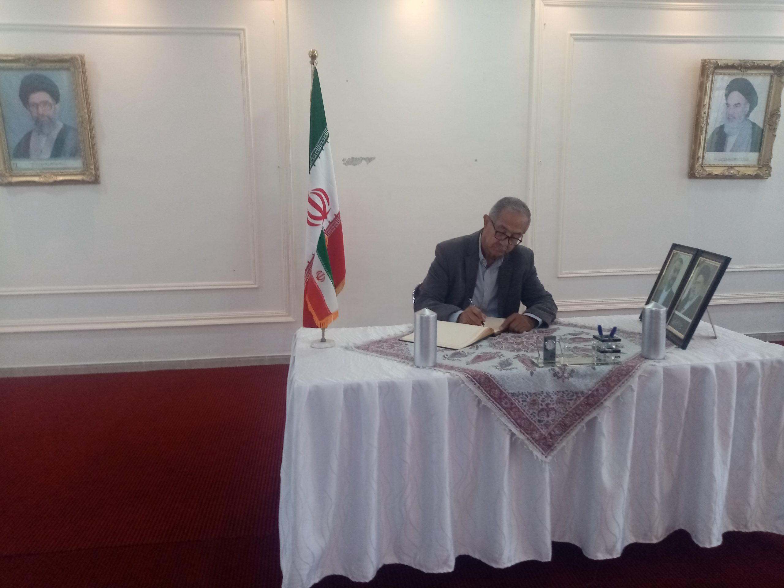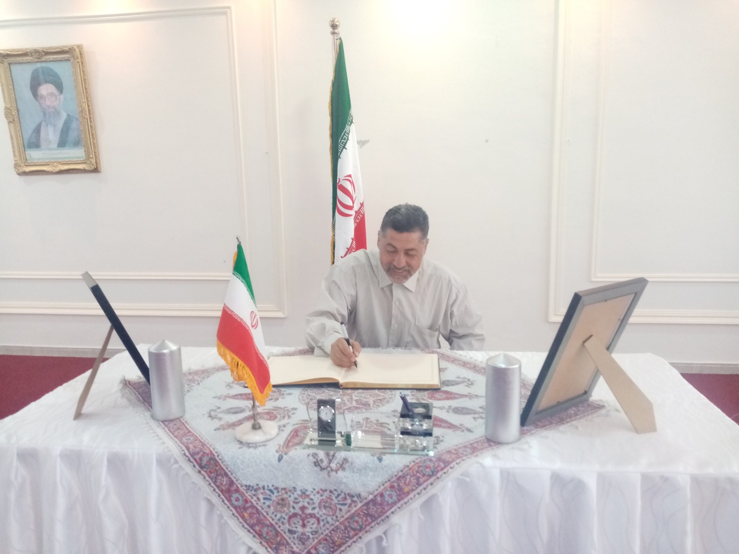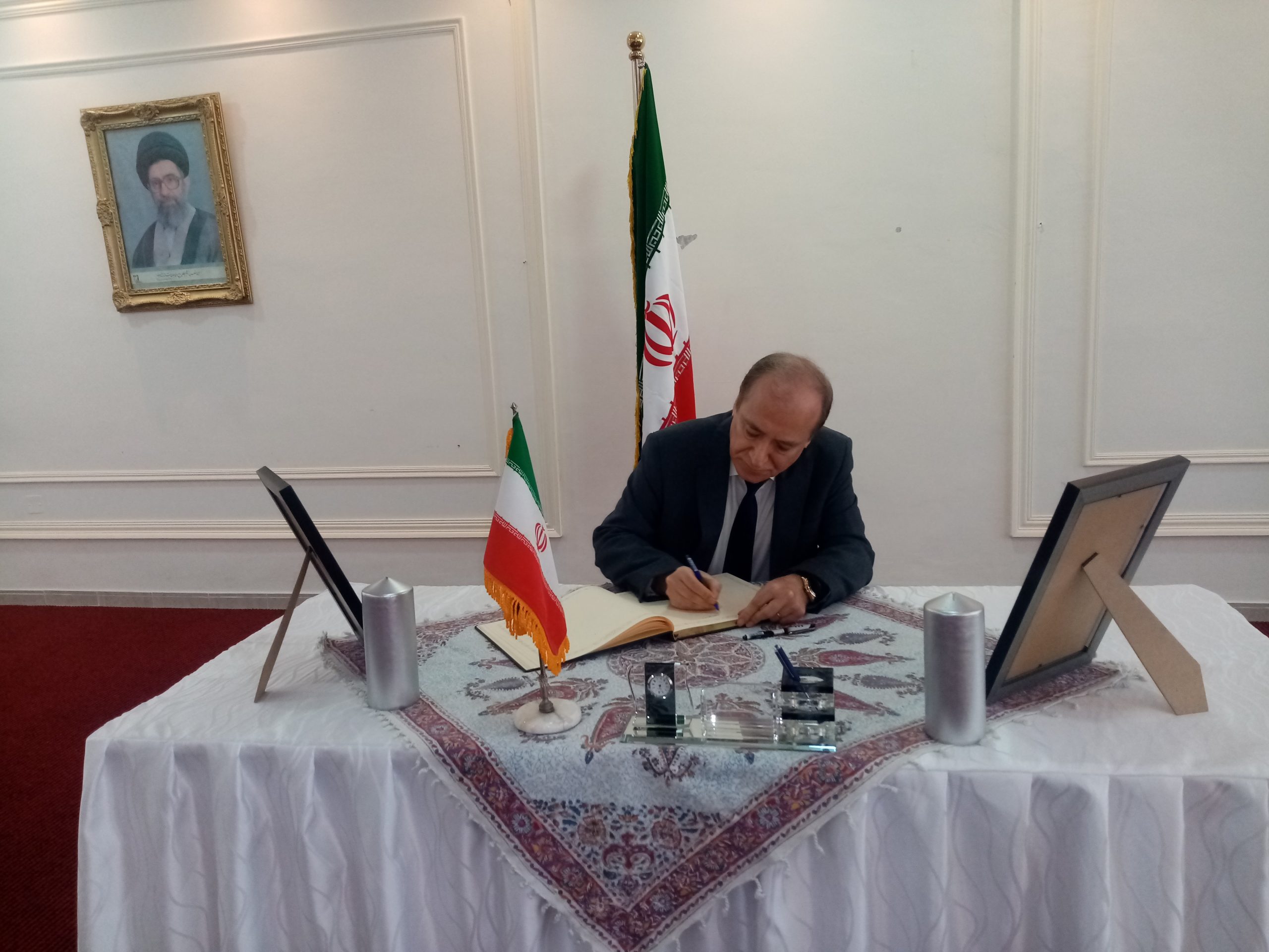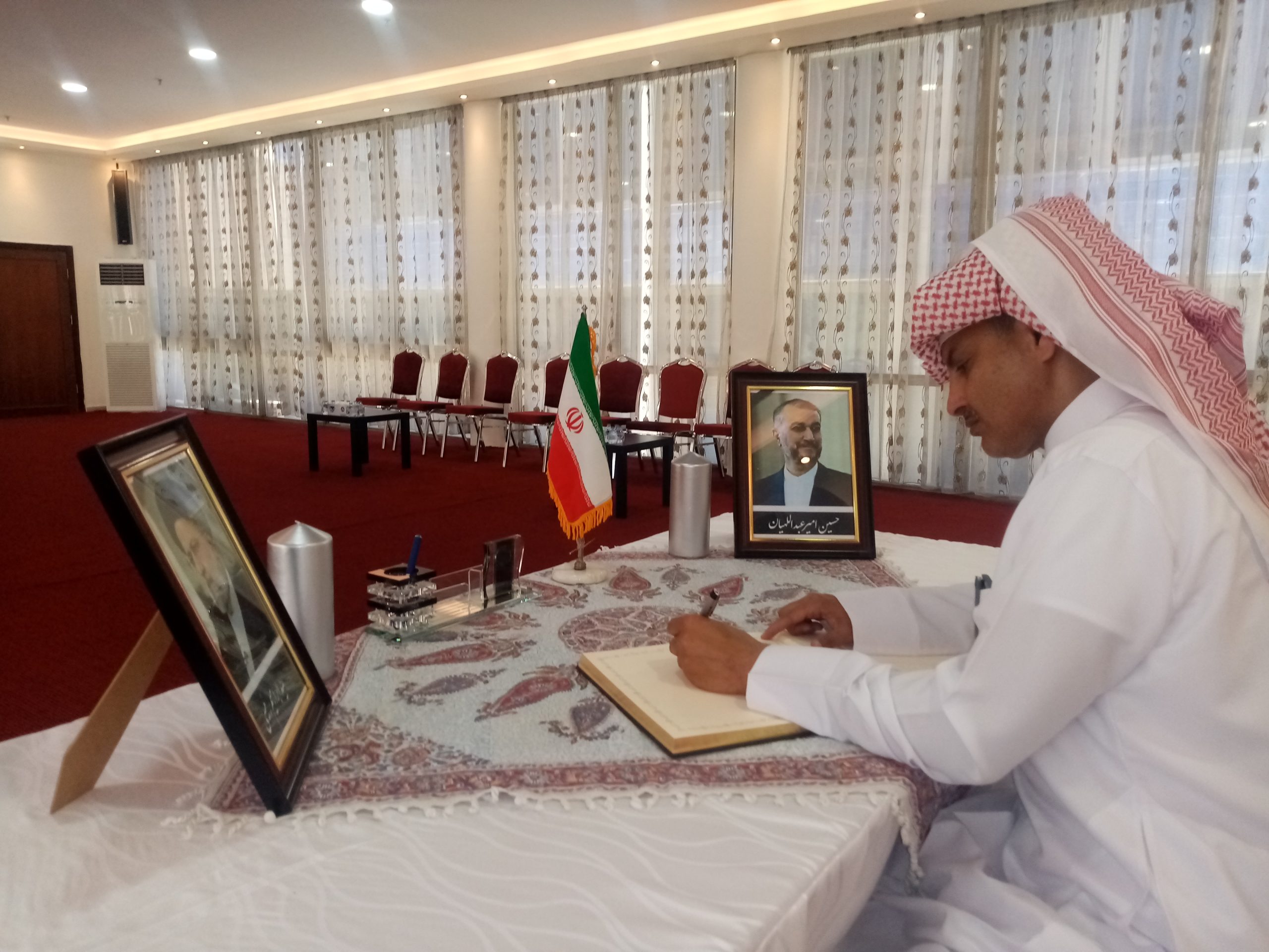 شبكة الشرق الأوسط نيوز – محي الدين غنيم : إستقبل سعادة سفير الجمهورية الإسلامية الإيرانية في عمان ،الأستاذ ” علي أصغر ناصري ” وأركان السفارة جموع المعزين بوفاة الرئيس الإيراني إبراهيم رئيسي ووزير الخارجية حسين أمير عبداللهيان والوفد المرافق لهما، الذين توفوا في حادث تحطم طائرة مروحية كانت تقلهم لدى عبورها منطقة جبلية وسط ضباب كثيف .