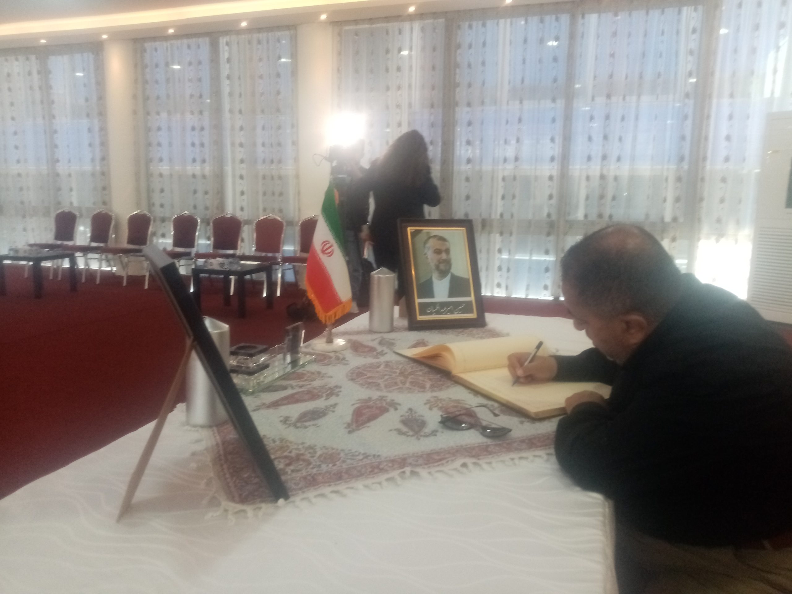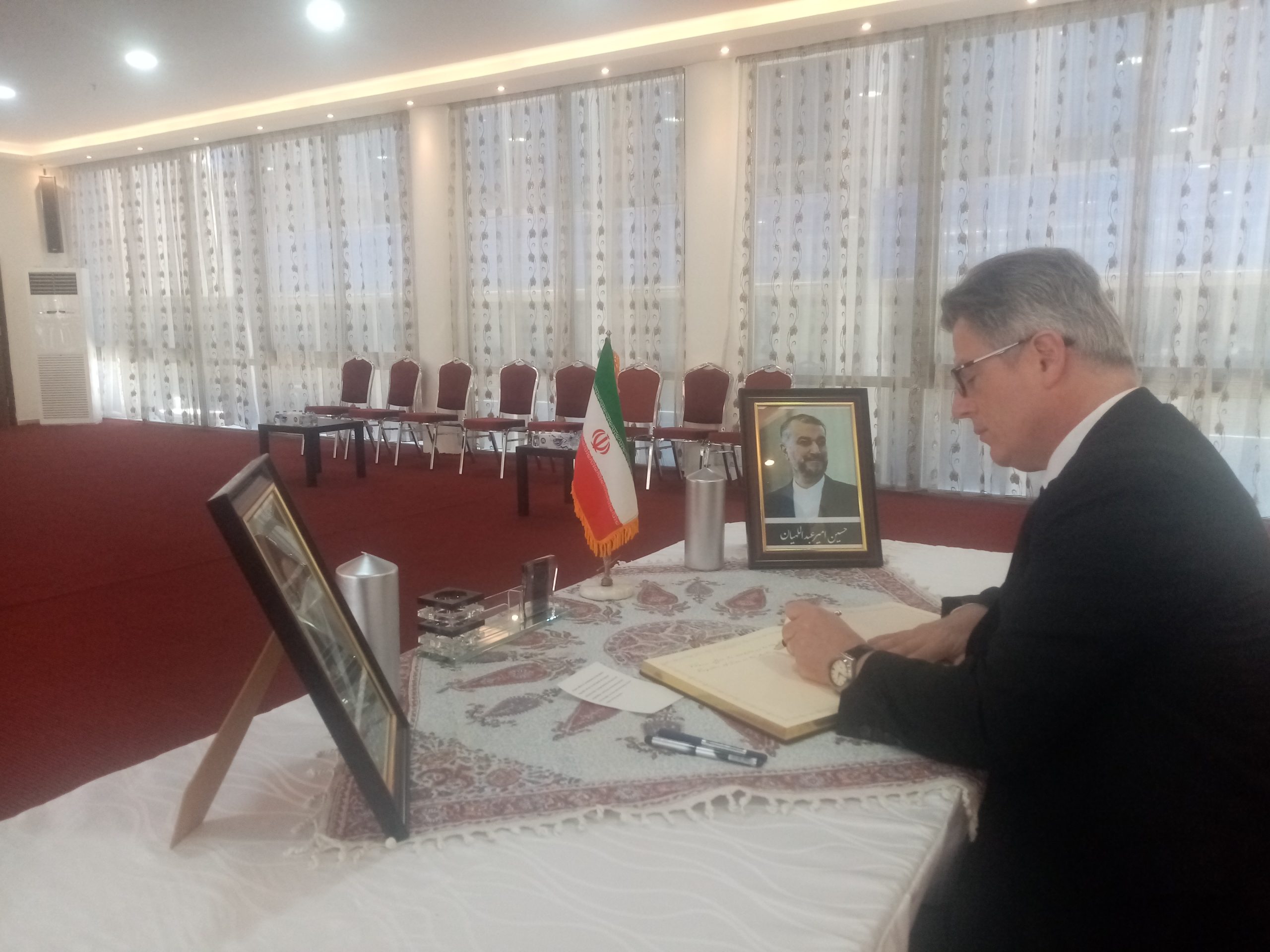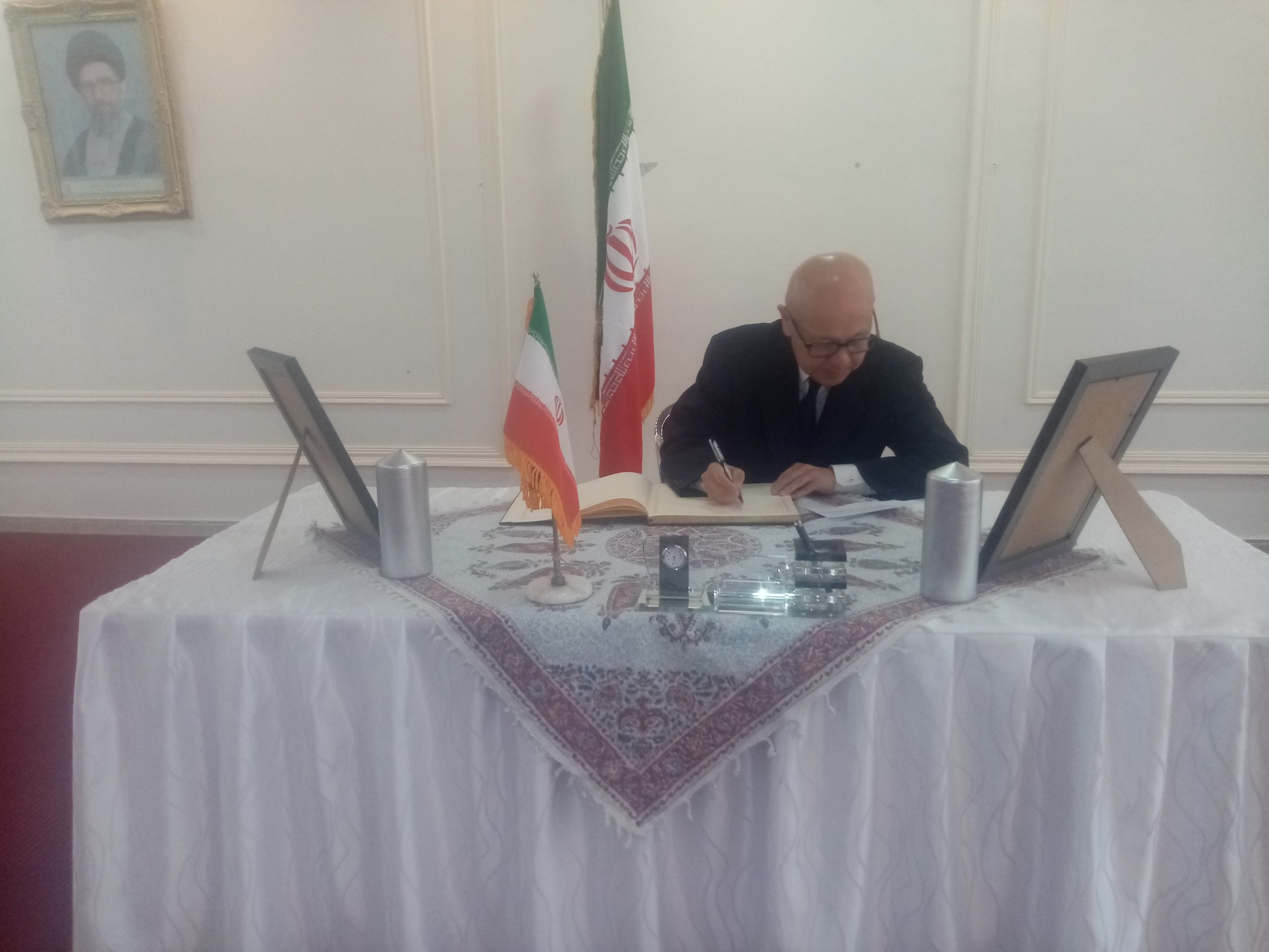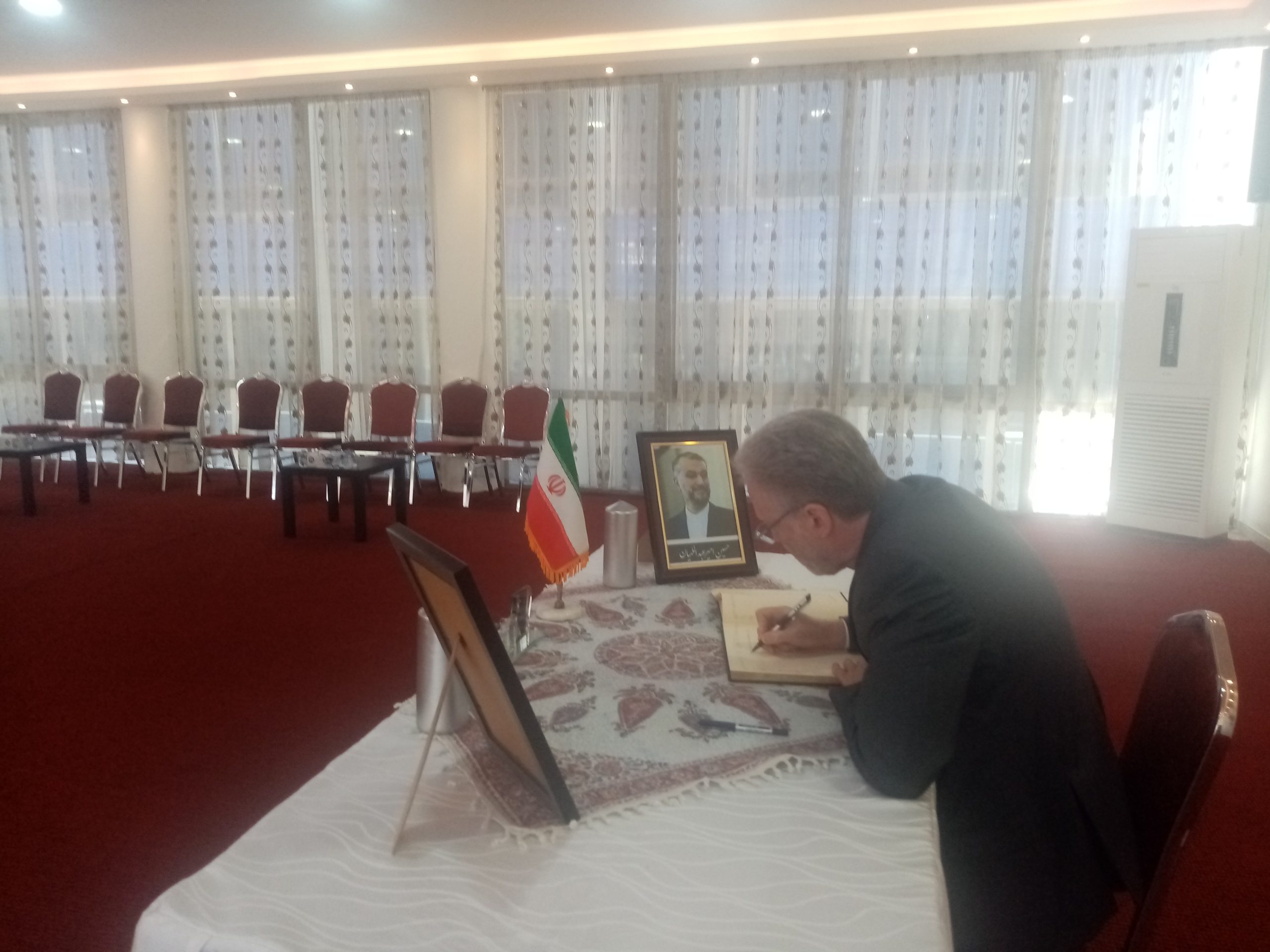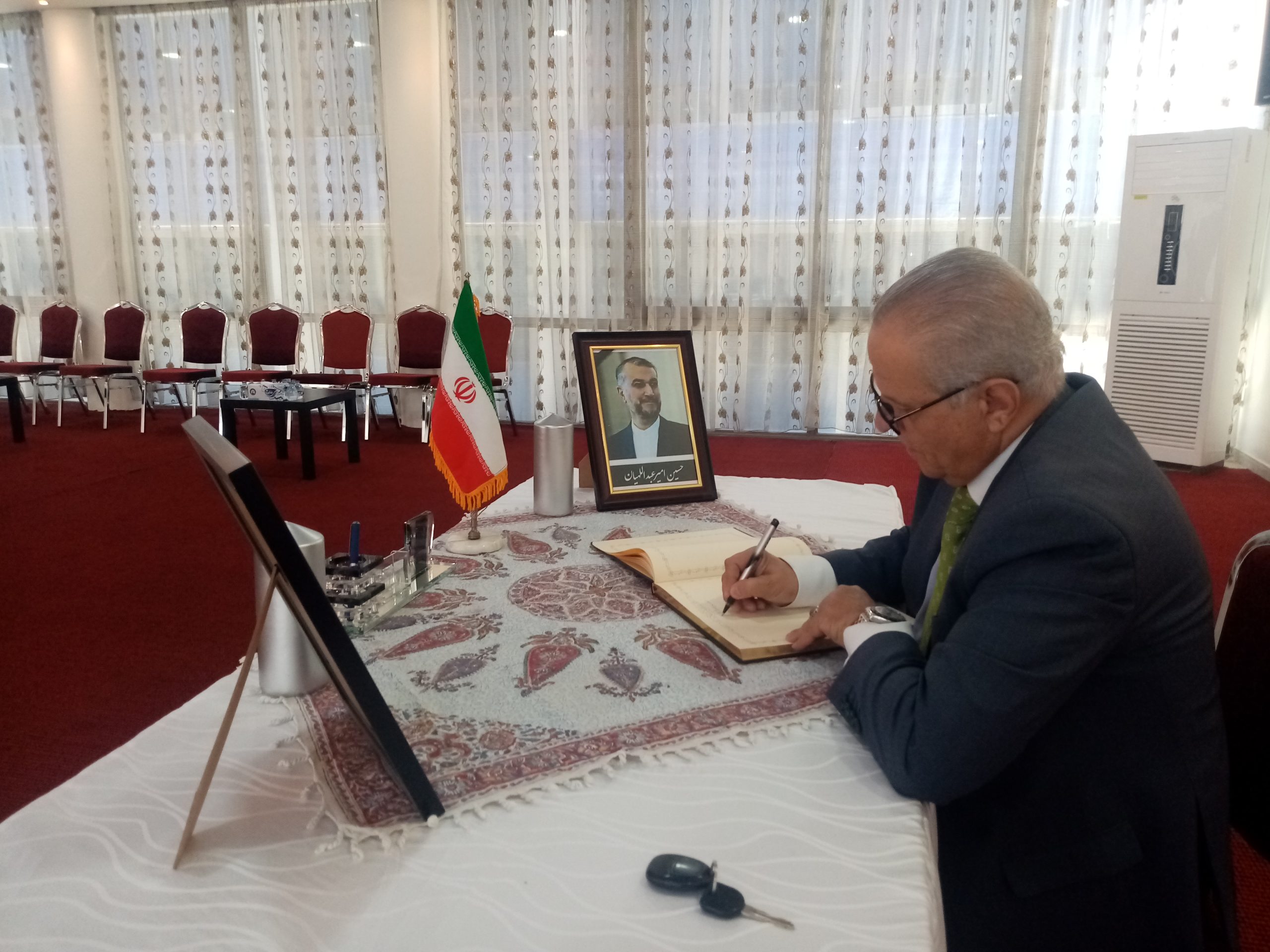 شبكة الشرق الأوسط نيوز – محي الدين غنيم : إستقبل سعادة سفير الجمهورية الإسلامية الإيرانية في عمان ،الأستاذ ” علي أصغر ناصري ” وأركان السفارة جموع المعزين بوفاة الرئيس الإيراني إبراهيم رئيسي ووزير الخارجية حسين أمير عبداللهيان والوفد المرافق لهما، الذين توفوا في حادث تحطم طائرة مروحية كانت تقلهم لدى عبورها منطقة جبلية وسط ضباب كثيف .