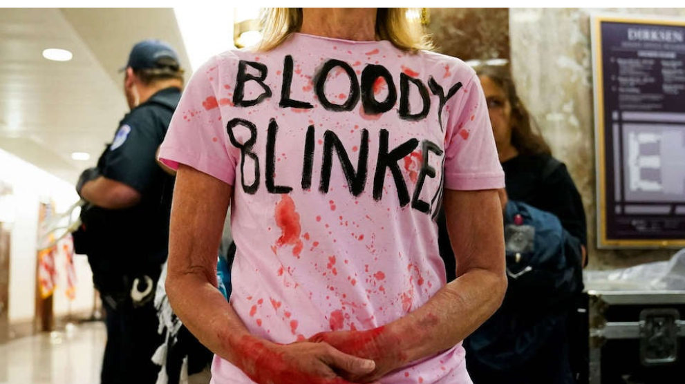 واحتجت المجموعة على كلمة بلينكن أمام لجنة العلاقات الخارجية في مجلس الشيوخ حول الدبلوماسية الأمريكية والتحديات العالمية وطلب الموازنة لعام 2025.
