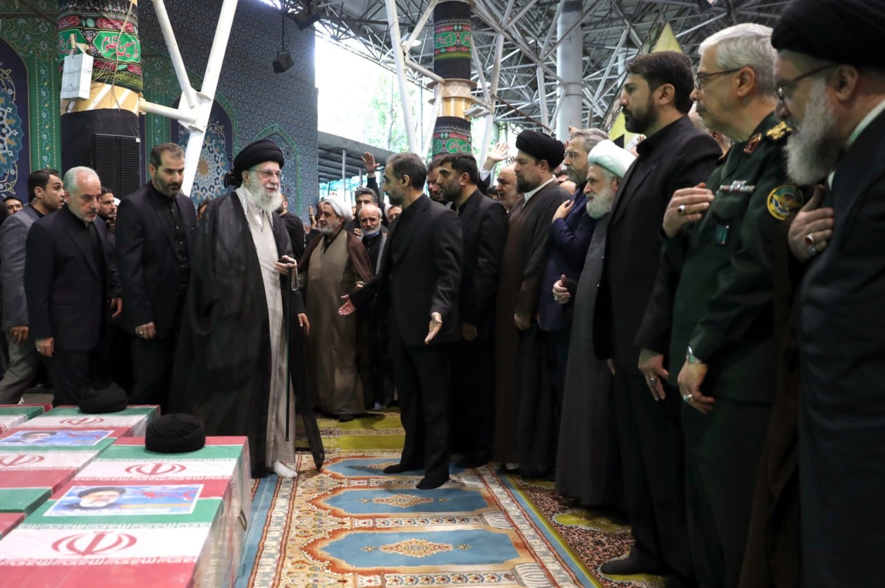 وصباح اليوم، ودّعت العاصمة الإيرانية طهران جثامين الشهداء وذلك وسط توافد حشود رسمية وشعبية. وضمن مراسم التشييع أمّ السيد خامنئي، الصلاة على جثامين الشهداء في جامعة طهران.