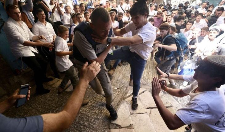 شبكة الشرق الأوسط نيوز : اعتدى مستوطنون بالضرب، الأربعاء، على صحافيين في منطقة باب العامود بالبلدة القديمة في القدس الشرقية، من بينهم الصحافي المقدسي سيف القواسمي، وذلك قبيل انطلاق ما تسمى بـ”مسيرة الأعلام” الإسرائيلية التي تحتفي بذكرى احتلال المدينة عام 1967.