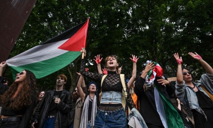 كما رفع عدد منهم لافتة كبيرة كتب عليها “فون دير لاين لا يمكنك إخفاء تمويلك للإبادة الجماعية”، لكن قوات الشرطة تدخلت لإخراجهم من مكان التجمع الانتخابي.