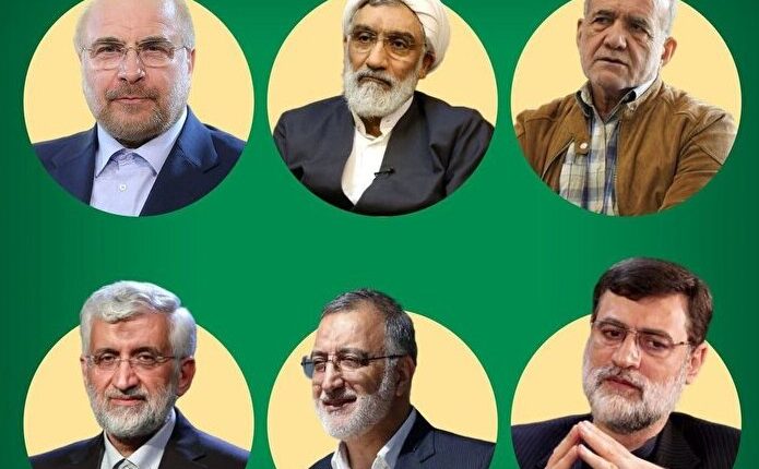 1- مسعود بزشكيان 2- مصطفى بورمحمدي 3- سعيد جليلي 4- علي رضا زاكاني 5- أمير حسين قاضي زاده هاشمي 6- محمد باقر قاليباف.