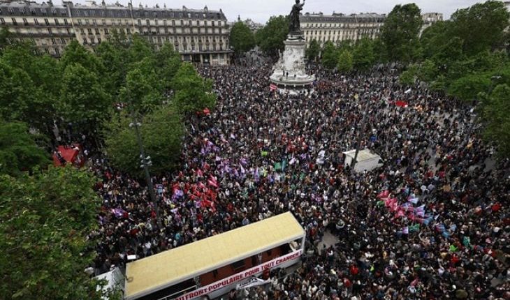وكانت نقابات وجمعيات وأحزاب يسارية قد دعت إلى “مد شعبي” لدرء فوز جديد يتوقّع أن يحقّقه حزب “التجمّع الوطني” (يمين متطرّف) في جولتي الانتخابات التشريعية، المقرّرتين في 30 حزيران/يونيو و7 تموز/يوليو، بعد تفوّقه، الأحد، في الاستحقاق البرلماني للاتحاد الأوروبي، في تطوّر دفع رئيس البلاد إلى حل الجمعية الوطنية.