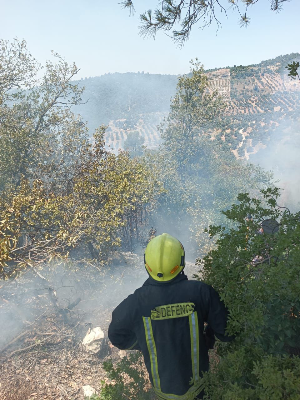 **الدفاع المدني يخمد حريق أتى على مساحات واسعة في منطقة الصفصافة بعجلون.
