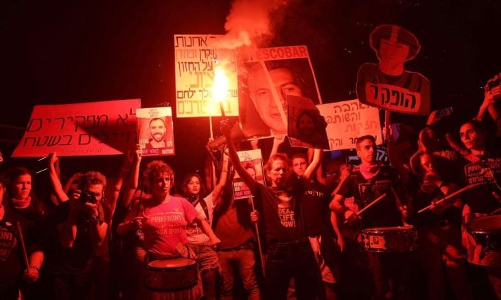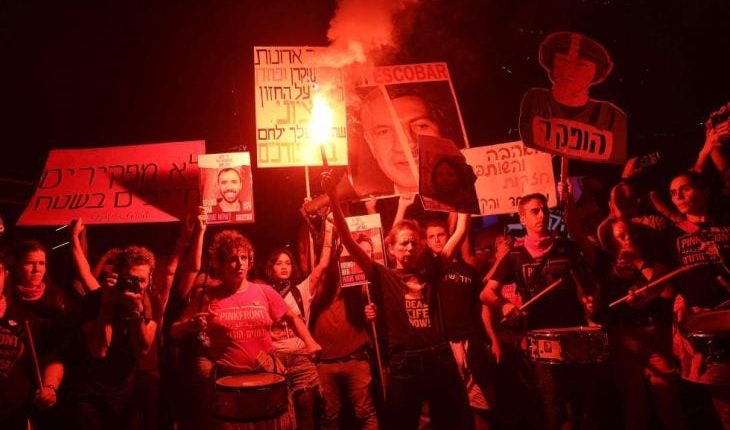 شبكة الشرق الأوسط نيوز : تظاهر عشرات آلاف الإسرائيليين، مساء الاثنين، قبالة الكنيست في القدس الغربية ضد حكومة بنيامين نتنياهو مطالبين بإجراء انتخابات مبكرة وإبرام صفقة تبادل أسرى مع حركة حماس
