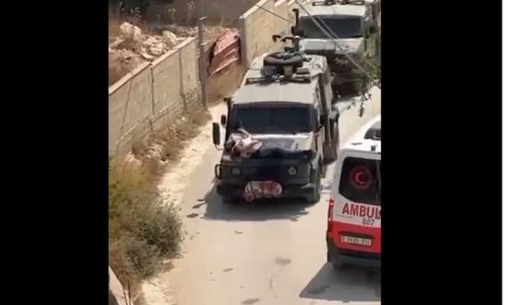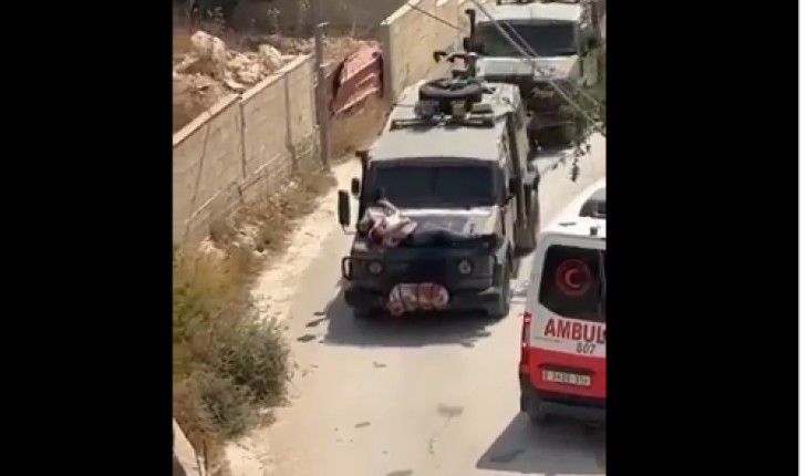 جيش الاحتلال يقيد فلسطينيا مصابا بمركبة ويستخدمه درعا بشريا في جنين- (فيديو)