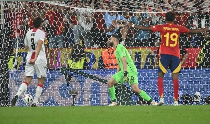 شبكة الشرق الأوسط نيوز : تعافت إسبانيا المتألقة من صدمة تلقي هدف عكسي مبكر لتتغلب في نهاية المطاف 4-1 على جورجيا الشجاعة والمفعمة بالحيوية اليوم الأحد، لتضرب موعدا مرتقبا في دور الثمانية من بطولة أوروبا لكرة القدم 2024 أمام المستضيفة ألمانيا.
