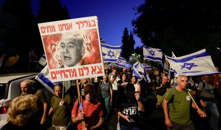 وقالت قناة “12” العبرية الخاصة إن آلاف الإسرائيليين شاركوا في المظاهرة التي انطلقت بالقدس، واتجهت نحو مقر إقامة نتنياهو، للمطالبة بإبرام صفقة تبادل أسرى.