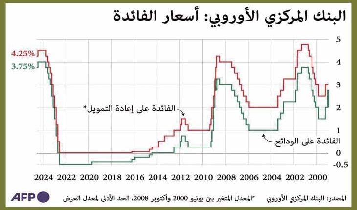 شبكة الشرق الأوسط نيوز : أعلن البنك المركزي الأوروبي في فرانكفورت أمس الخميس الإبقاء على أسعار الفائدة في منطقة اليورو حيث سيبقى سعر الفائدة الرئيسي الذي تدفعه البنوك على الأموال التي تقترضها من البنك عند 25ر4%، فيما سيبقى سعر الفائدة الذي تحصل عليه البنوك عن ودائعها لدى البنك عند 75ر3% دون تغيير.