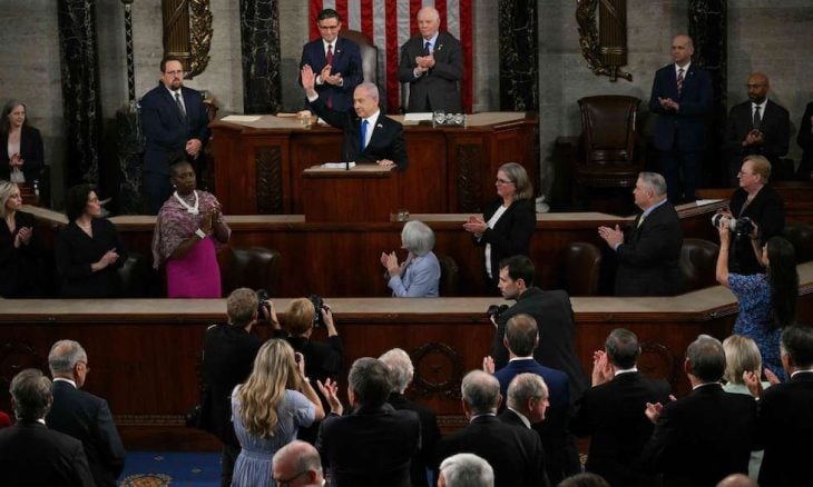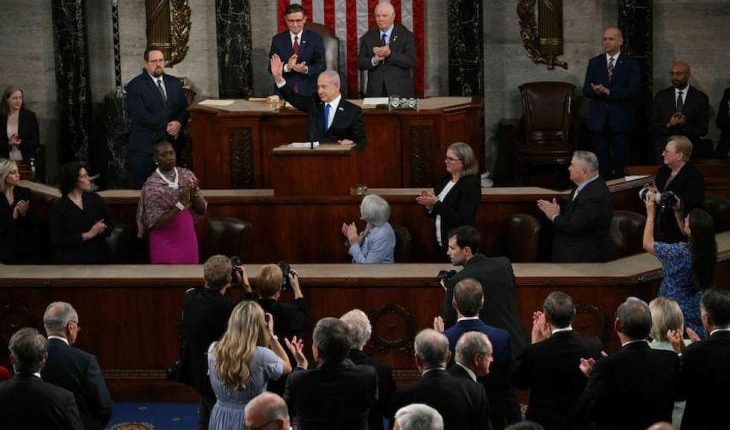 وهاجم نتنياهو المناهضين لحرب الإبادة التي تشنها إسرائيل على غزة منذ أكتوبر/ تشرين الأول الماضي، قائلا إن “الكثير من المتظاهرين ضد إسرائيل اختاروا أن يقفوا مع الشر ومع حماس ويجب أن يشعروا بالعار”. وأضاف أن هؤلاء “يريدون تدمير الولايات المتحدة أيضا”، وأن “إيران تمول المتظاهرين خارج الكونغرس الآن”.