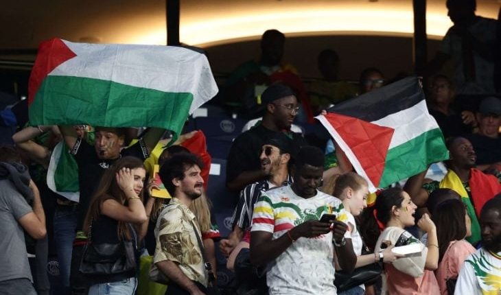 شبكة الشرق الأوسط نيوز : شهدت مدرجات حديقة الأمراء بباريس، مساء الأربعاء، رفع العديد من الأعلام الفلسطينية بالإضافة إلى أقمشة كتب عليها “فلسطين” خلال مباراة المنتخب الإسرائيلي لكرة القدم ضد نظيره المالي ضمن أولمبياد باريس، في مشهد أدى إلى تدخل أمن الملعب. كما تم إطلاق صيحات الاستهجان على عزف النشيد الوطني الإسرائيلي.
