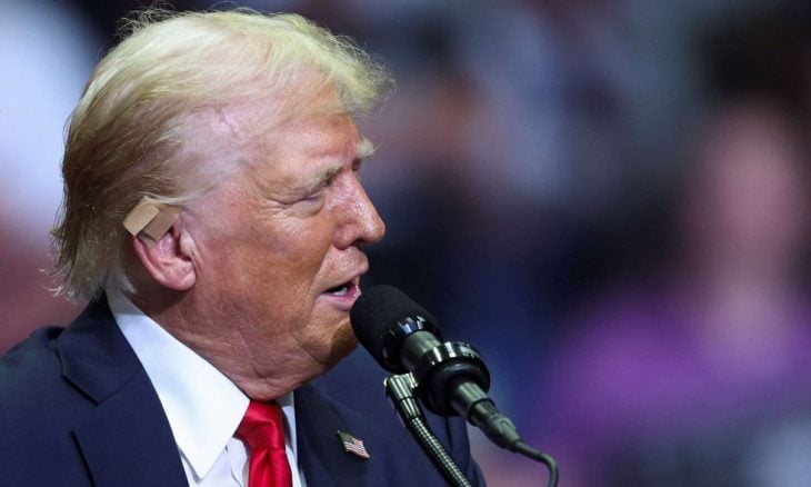 وأصيب ترامب في أذنه اليمنى خلال تجمّع انتخابي في 13 تموز/ يوليو في بنسلفانيا، ونجا ممّا وصفه مكتب التحقيقات الفدرالي بأنه محاولة اغتيال عندما أطلق مسلّح ثماني رصاصات عليه أثناء إلقائه خطاباً.