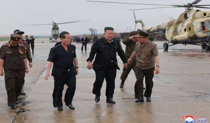 وأفادت وكالة الأنباء المركزية الكورية الشمالية بأن كيم زار المناطق التي اجتاحتها الفيضانات في مدينة سينويغو وبلدة أويغو بإقليم شمال فيونغان يوم الأحد، بعد هطول أمطار غزيرة قياسية على الحدود الشمالية لكوريا الشمالية.