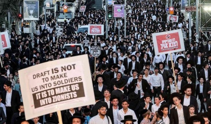 وقالت صحيفة “يديعوت أحرونوت” العبرية الخاصة، إن المئات من الحريديم الرافدين للتجنيد بجيش الاحتلال نظموا وقفة احتجاجية أمام مبنى “دار الجندي” للمؤتمرات وسط تل أبيب، الذي كان يستضيف مؤتمرا بعنوان “بحث مسارات تجنيد الحريديم”.
