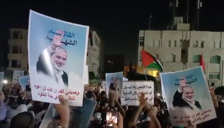 آلاف الاردنيين قرب سفارة الاحتلال تنديدا بجريمة اغتيال هنية
